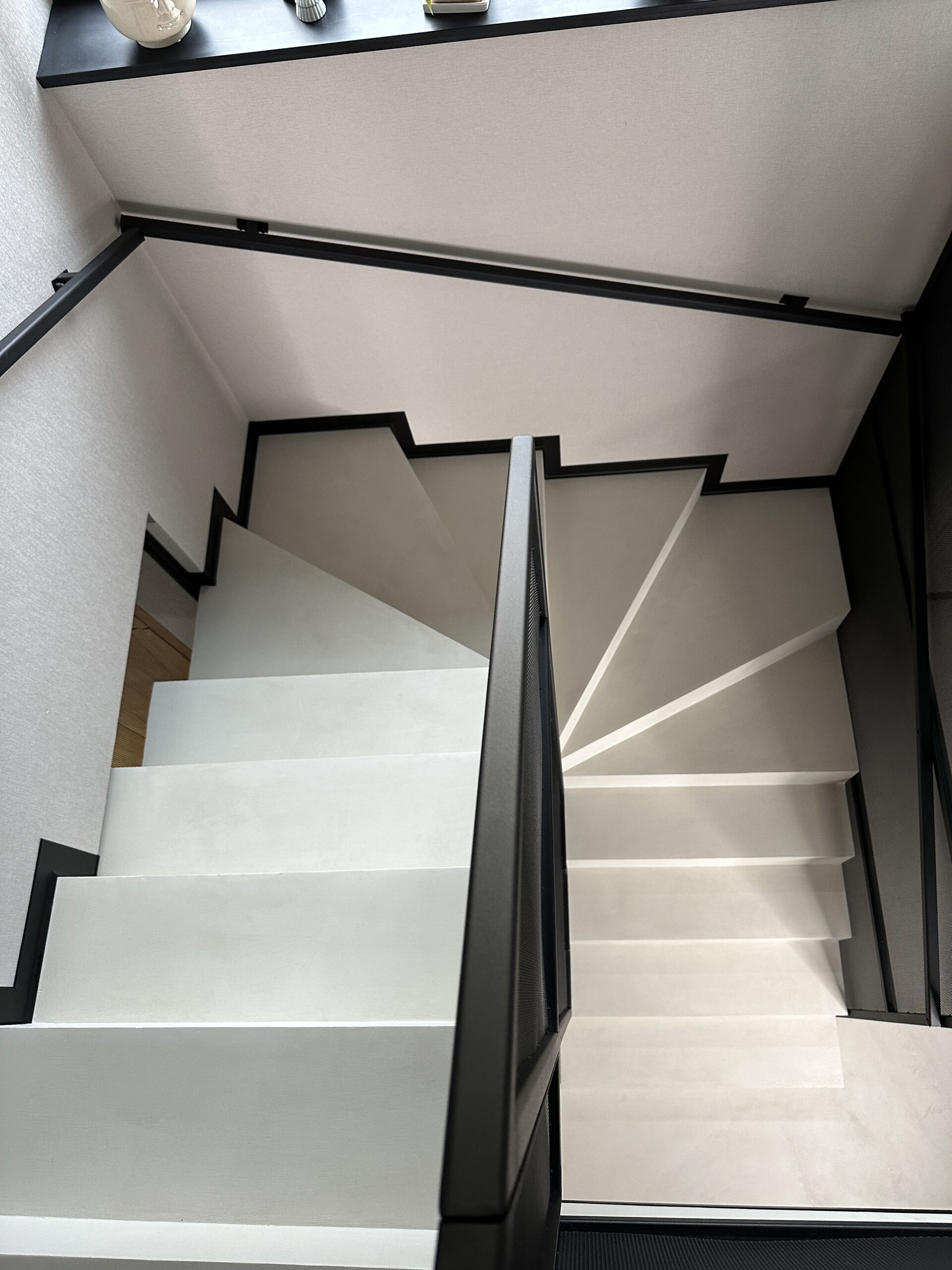 Lakierowana ściana z mikrobetonu, to idealne rozwiązanie w takich miejscach jak klatka schodowa, kuchnia czy ścianka RTV